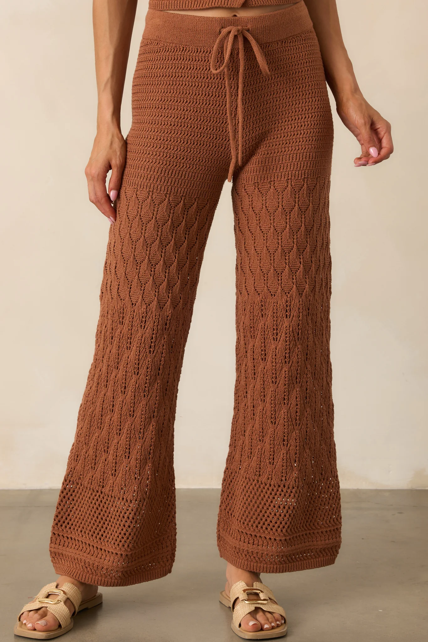 The Z Supply Brown Adia Crochet Pants are for the moments when you want your style to feel a little more considered. Effortlessly cool with a thoughtful edge, they bring just the right amount of presence to whatever the day has in store. These brown pants feature a split crochet pattern design, elastic waistband, functional self-tie drawstring, and a wide leg design.